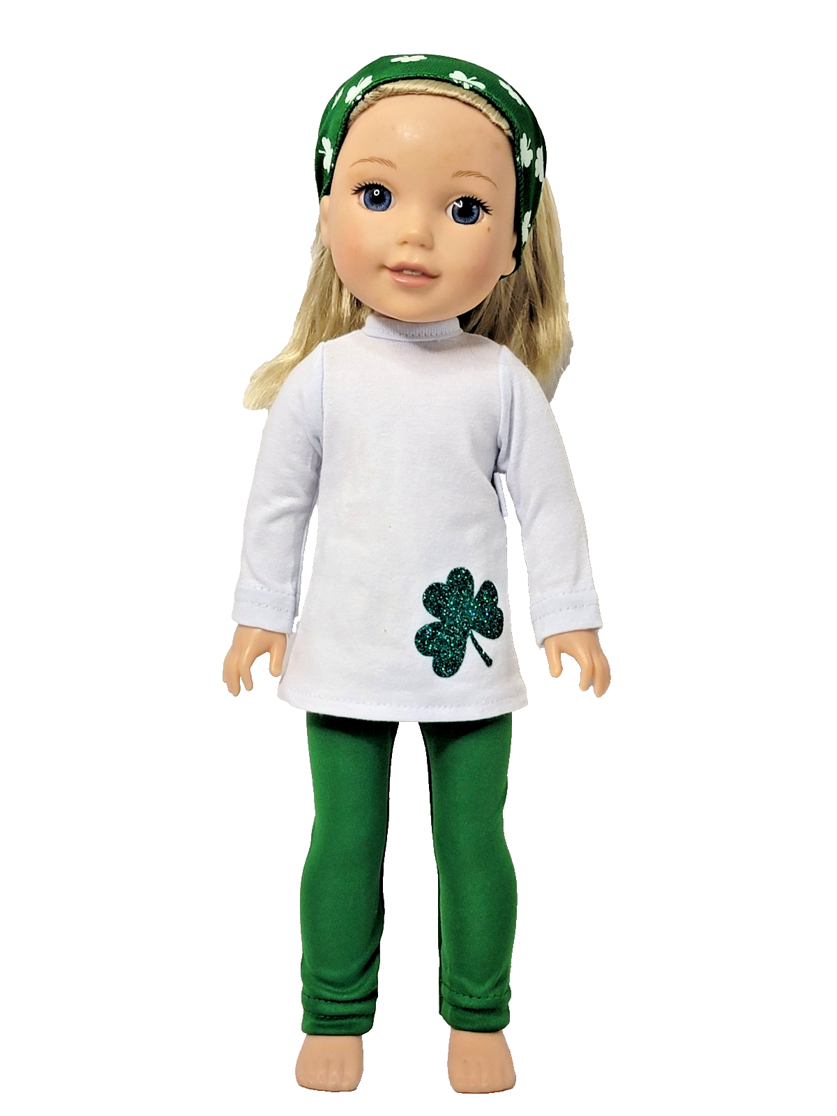 Irish Clover Pant Set Fits 14.5" Wellie Wisher American Girl Doll Clothing