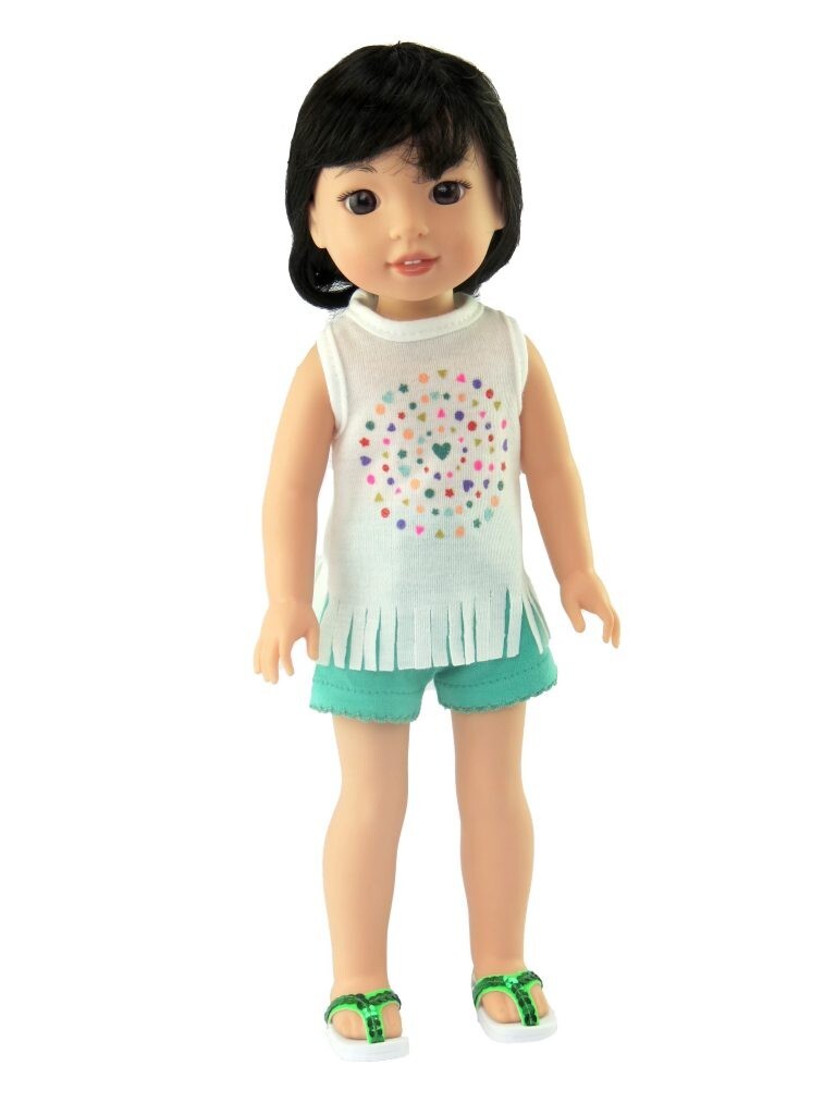Pastel Fringe Short Set Fits 14.5" Wellie Wisher American Girl Doll Clothing1