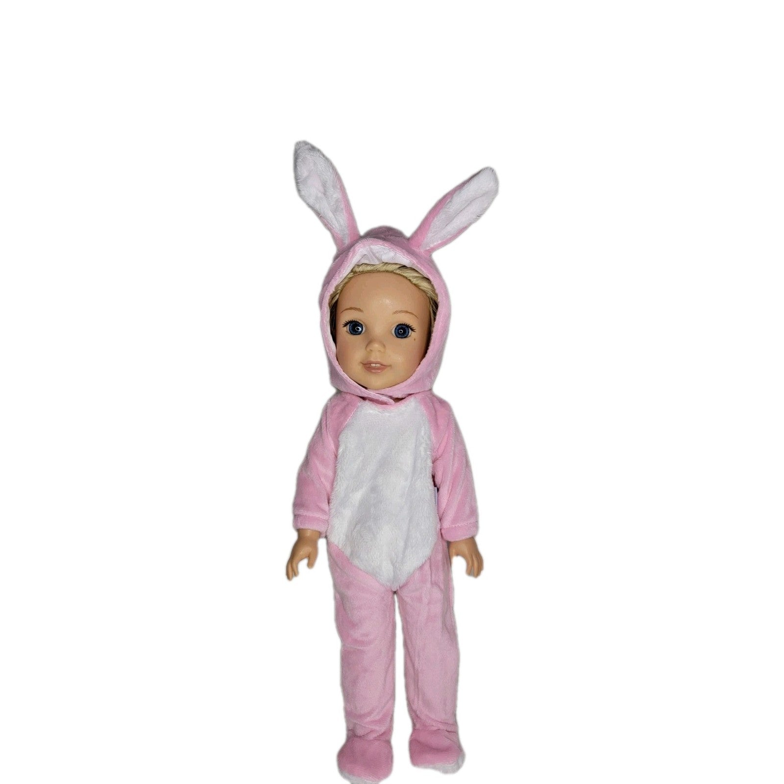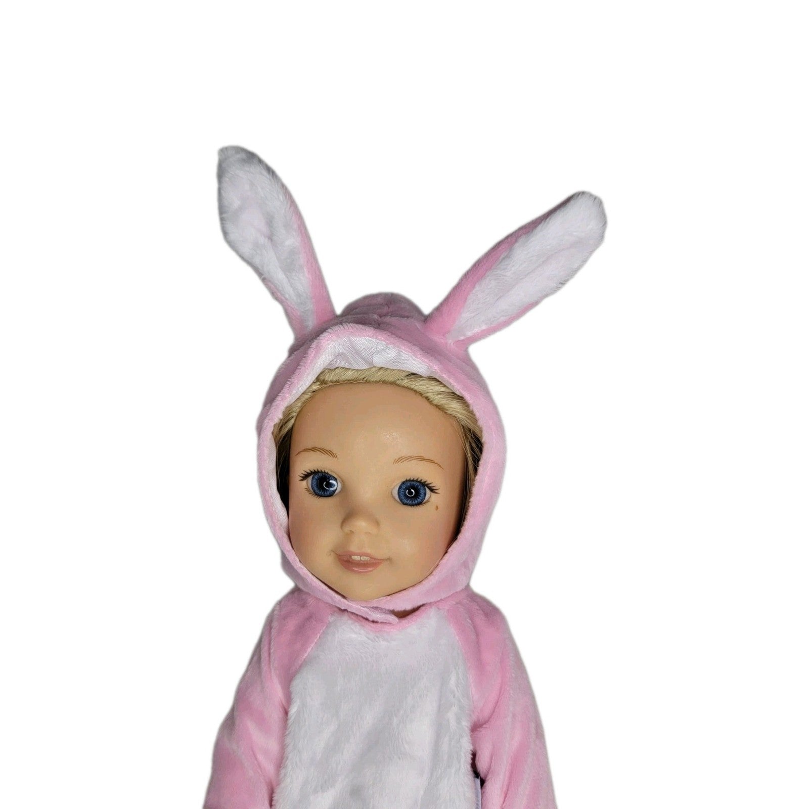 Pink bunny one piece suit and bunny ear headpiece.