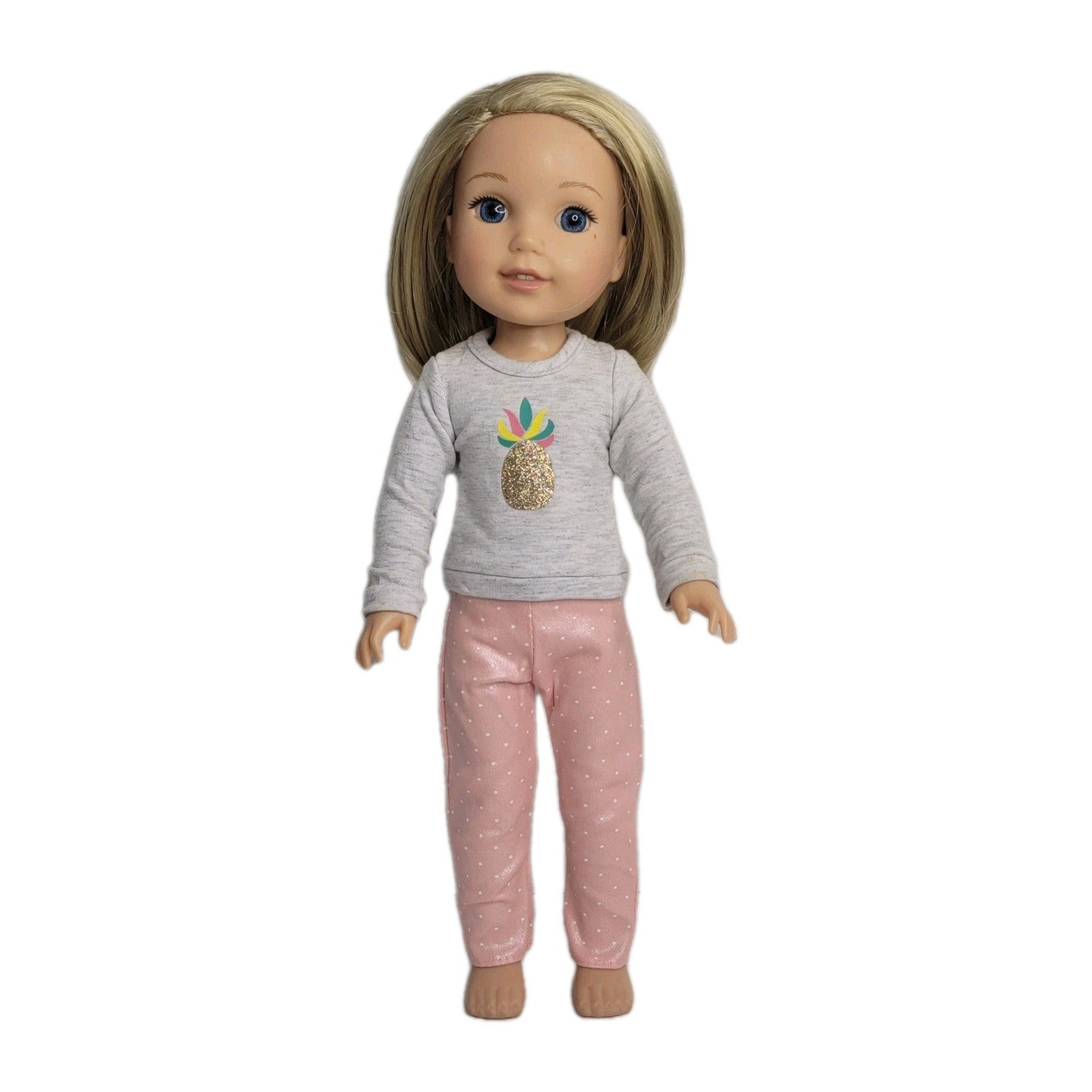 Pink Polka Dot Pant Set Fits 14.5" Wellie Wisher American Girl Doll Clothes1