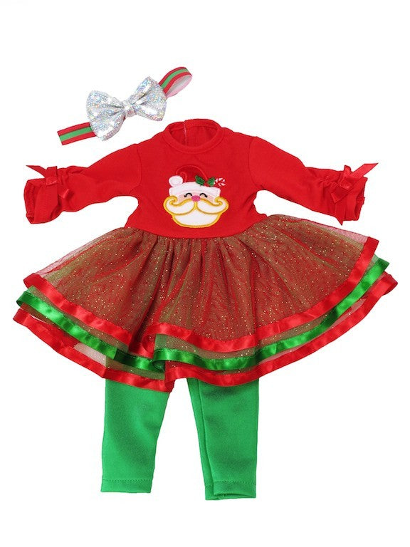 Red And Green Santa Dress Fits 14.5" Wellie Wisher American Girl Doll Clothing1