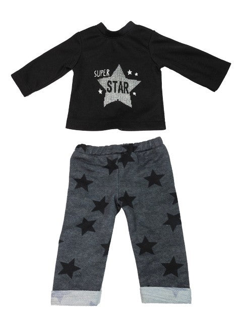 Black super star top and gray star pants.