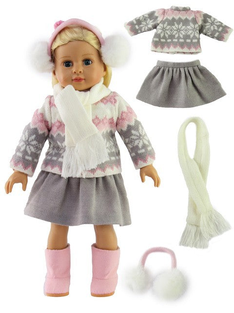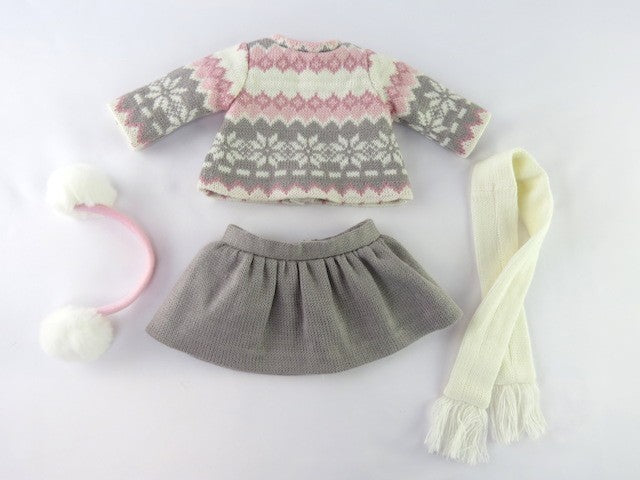Grey And Pink Sweater Skirt Set Earmuffs Fits 18" American Girl Doll Clothing