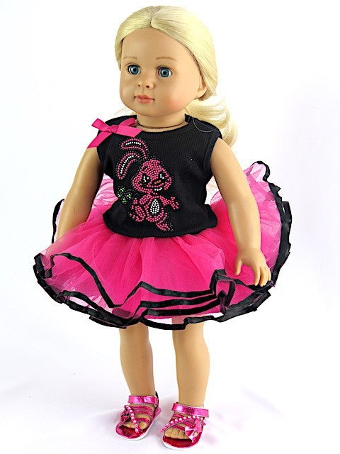 Black sleeveless bunny top and hot pink tutu skirt.