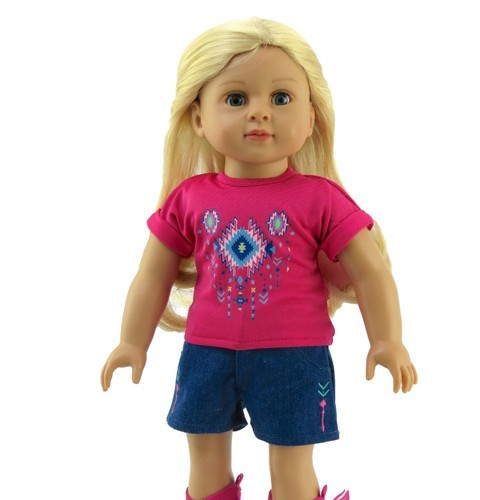 Hot Pink Tribal Print Short Set Fits 18" American Girl Doll Clothing1