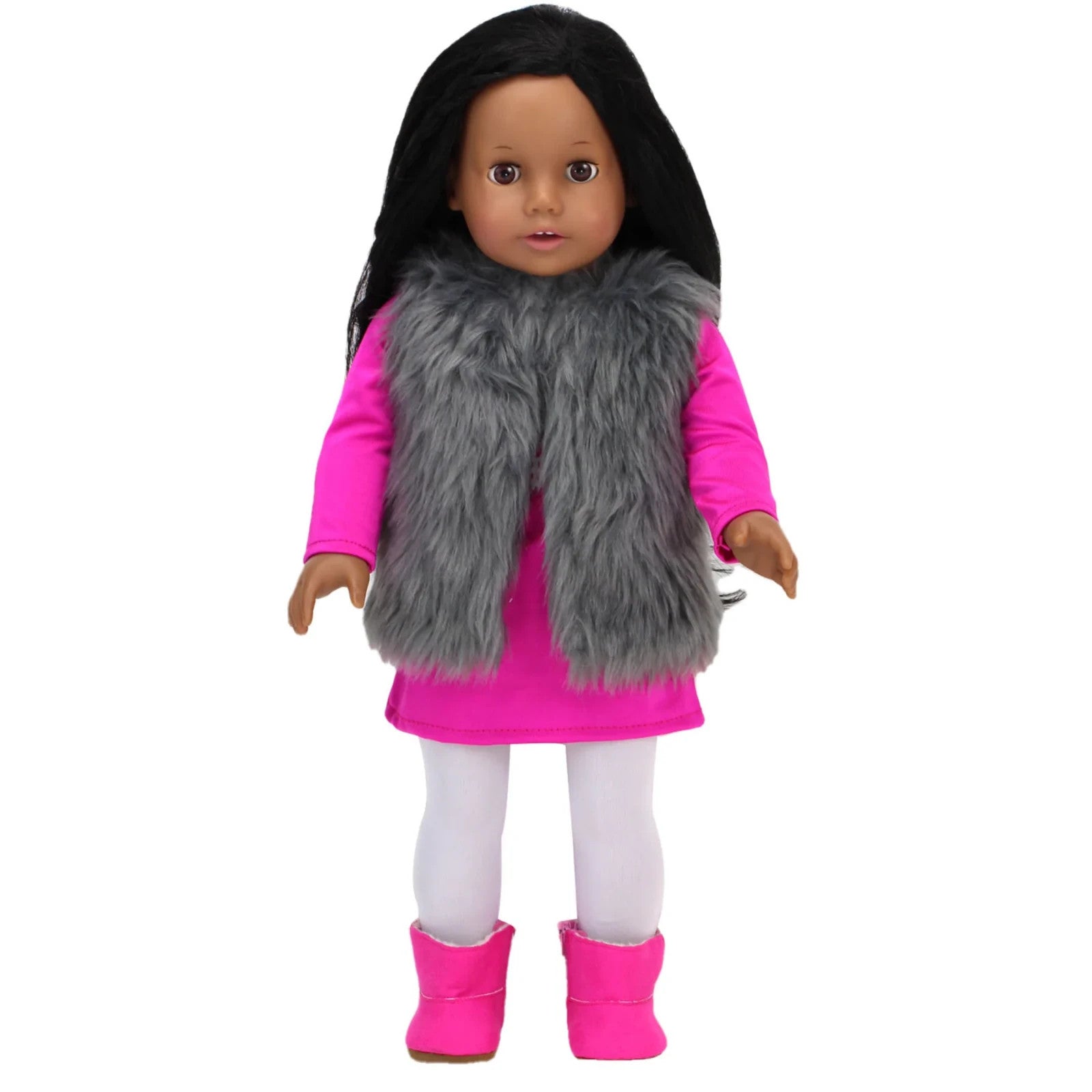 Pink Snowflake Tunic Leggings Vest & Boots Fits 18" American Girl Doll Clothes1