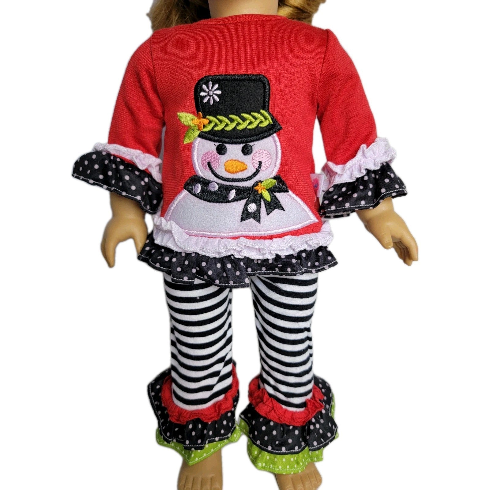 Polka Dots & Stripes Snowman Pant Set Fits 18" American Girl Doll Clothes0