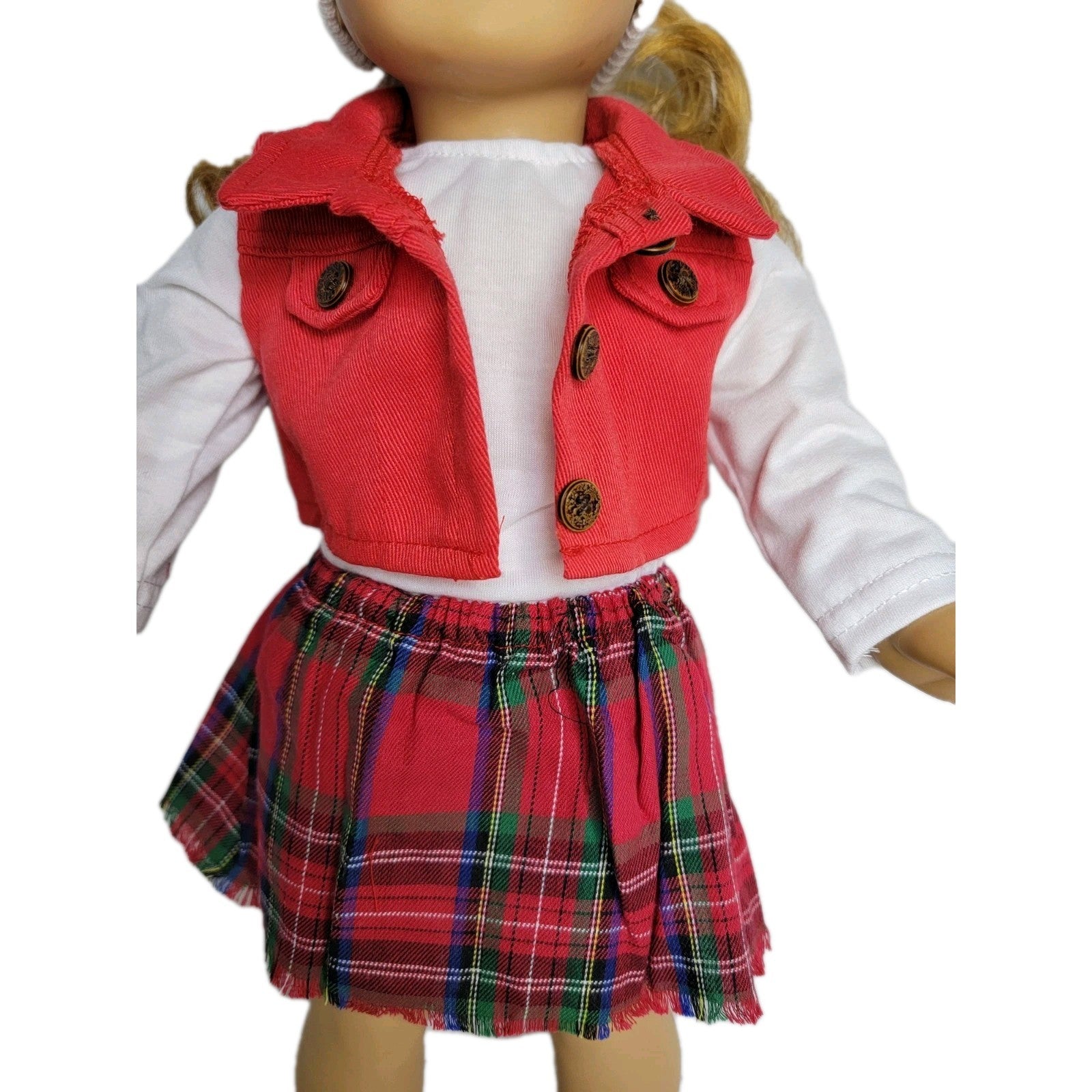 Red Plaid Winter 5pc Skirt Set Fits 18" American Girl Doll Clothes