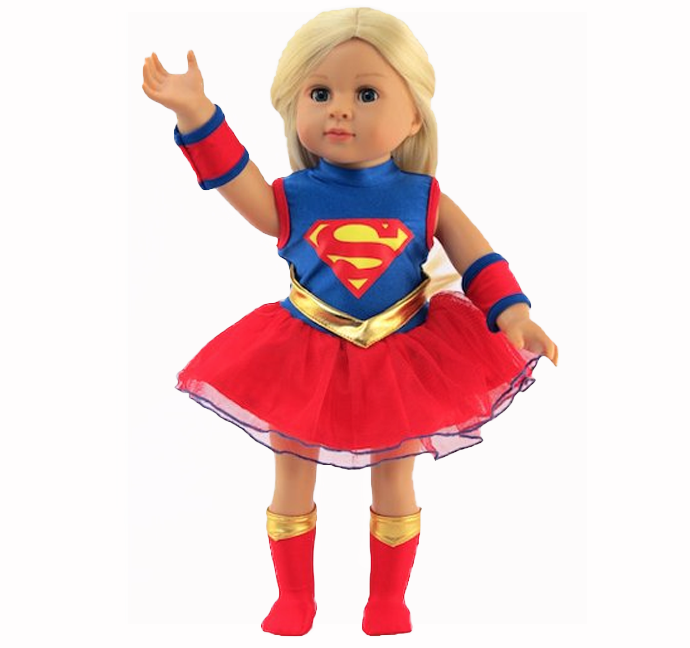 Super Girl Hero Dress Costume Fits 18" American Girl Doll Clothing