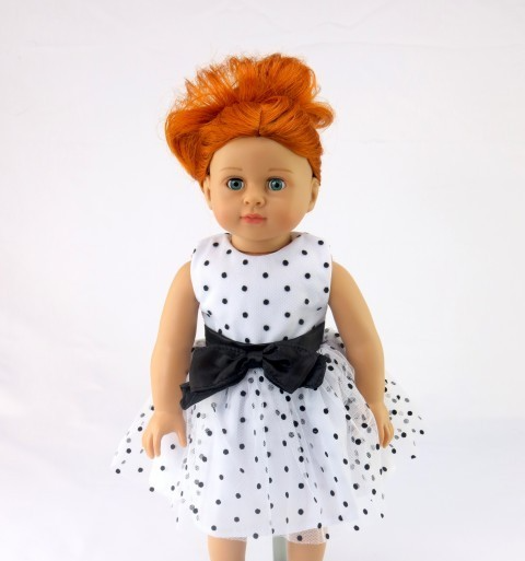White dress with black polka dots.