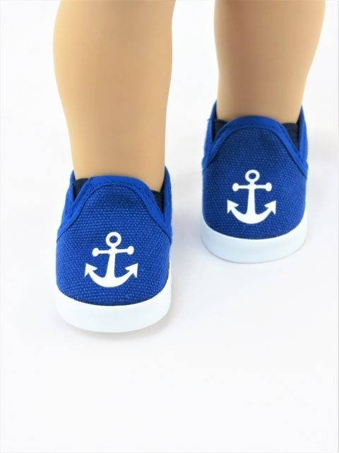 Royal blue anchor canvas slip on sneakers.