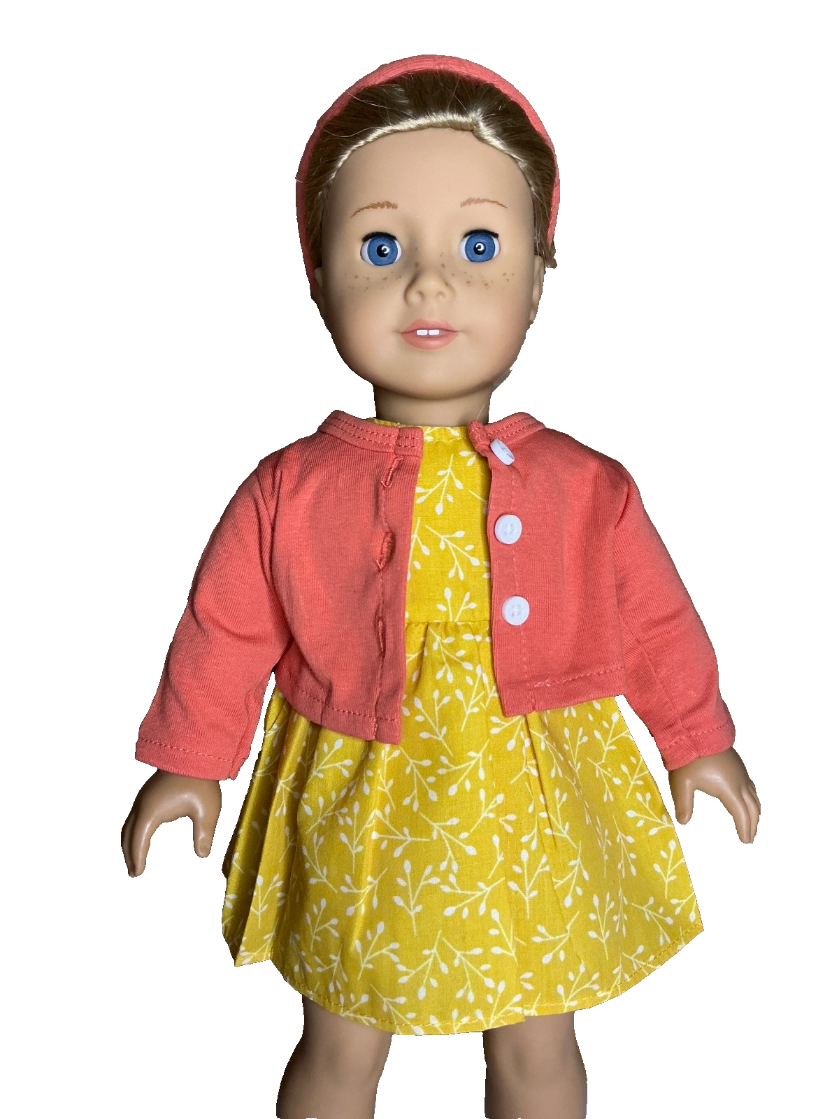 Autumn Dress Cardigan And Headband Fits 18" American Girl Doll Clothing